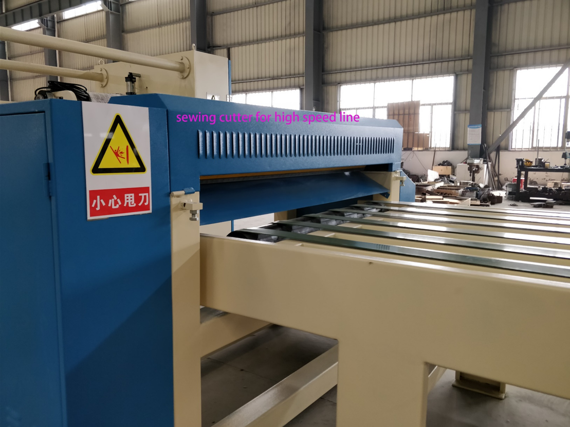 Optional 2 Paper Cutter Working principle : Sewing cutter gives high speed Scissor‐ Sheeter for melamine impregnated finishing. High precision feeding roller is driven by servo motor, it gives high accuracy in cutting length. Paper feeding rubber roller is controlled by 2 cylinders, and the bell‐shaped baffle is installed in the front, it keeps operation in a more safety. Paper feeding roller is driven by a deceleration motor. Sewing cutting sheeter controls by servo motor, the bottom knife blade erection is cylinder control, and it contains blade gap adjustment device. To avoid paper sliding in feeding position, a air blower is built-in. Cutting accuracy under 35m/min: ±1mm/1000mm. High precision code device is equipped with Shield cable Transferring, no symbol disturbance.