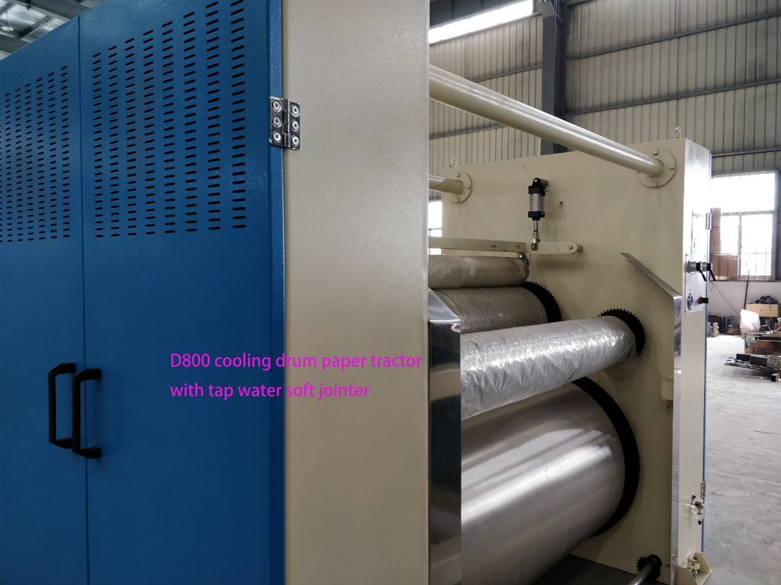 Optional 1 Paper Tractor Working principle : The main traction roller diameter of 800mm, inter‐layered design. There is rotary joint and cooling water connects and cycling inside the big drum. The auxiliary tractor Roller diameter is 350mm, which is also inter‐layered design, cooling water or tab water connection.