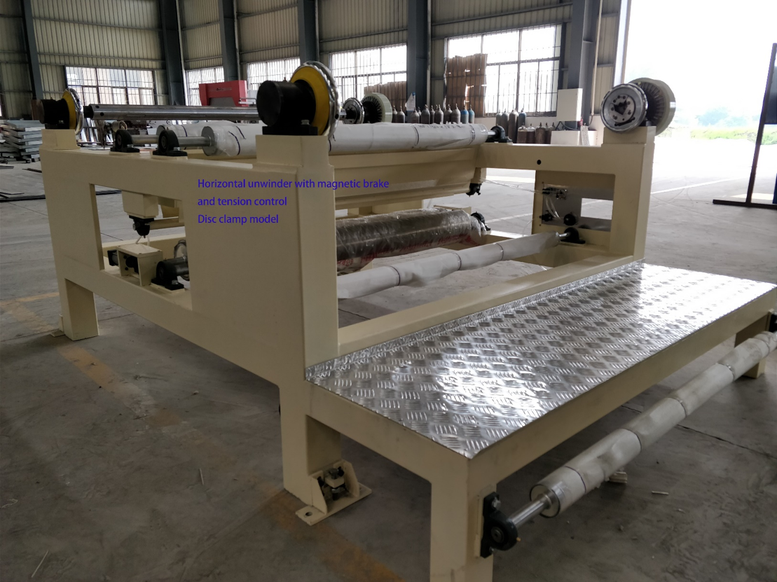 1. Un-Winder 1.1 Include Nos 2 pieces of Air‐expanding shafts shift two rollers of raw paper without stop in operating. Two set of tension control make paper unwinding automatically to match operating liner speed. 2.2 Feature Auto Splicer device is located between two raw paper rollers. Paper from two different paper roll can be jointed together by shifting knob while the initial pattern paper from its roll is cut off.